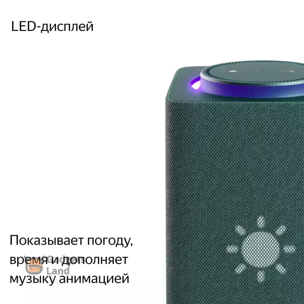 Дополнительная информация: LED-экран монохромный, белый (25x16 пикселей), технология Dolby Audio, мультирум, возможность отключения микрофонов; возможности без подписки: поиск и просмотр видео из сети, радио, видео из Яндекс.Эфир, игры и навыки Алисы, возможность использовать устройство, как колонку в режиме Bluetooth, установка напоминаний, будильников, таймеров, рассказ о новостях, погоде, пробках, маршрутах; радиус действия Bluetooth: до 10 м; размер ПС-излучателя: 120х95 мм